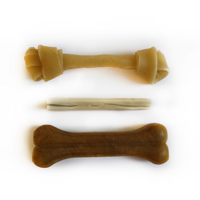 Der Dental Chew Mix für Hunde beinhaltet verschiedene Kauprodukte für kleine, mittlere und große Hunderassen in unterschiedlichen Formen. So bleibt es für Ihren Hund jedes Mal spannend mit welchem Snack Sie ihn überraschen. Kauen ist nicht nur wichtig für die Versorgung und Pflege des Gebisses, sondern verhindert auch Langeweile bei Ihrem Hund. In der Verpackung für kleine und mittlere Hunde sind 15 Kauprodukte und in der für große Hunde sind 9 enthalten.