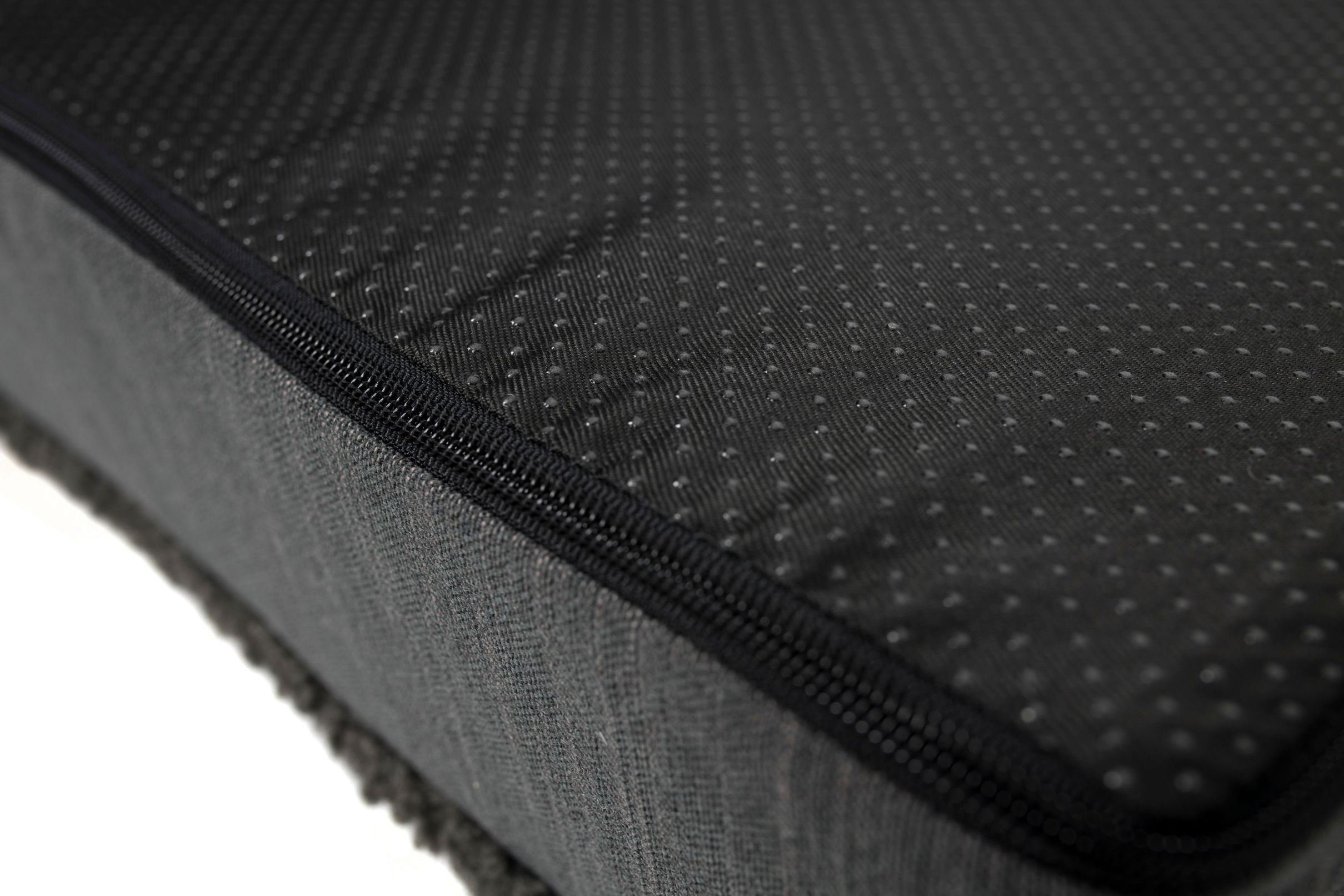 Der Bezug ist bei 30 Grad waschbar. Diese orthopädische Liege ist aus recyceltem Polyester hergestellt. Sie hat einen rutschfesten Boden, so dass sie nicht so leicht im Raum herumrutscht.