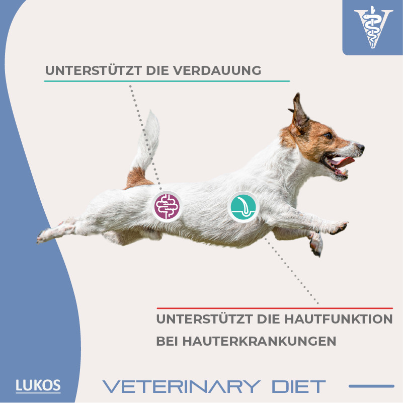 Lukos Veterinary Diet Hypoallergenic Hundefutter ist ein vollständig hypoallergenes Diätfutter für erwachsene Hunde, um Unverträglichkeiten gegenüber bestimmten Zutaten und/oder Nährstoffen zu reduzieren.